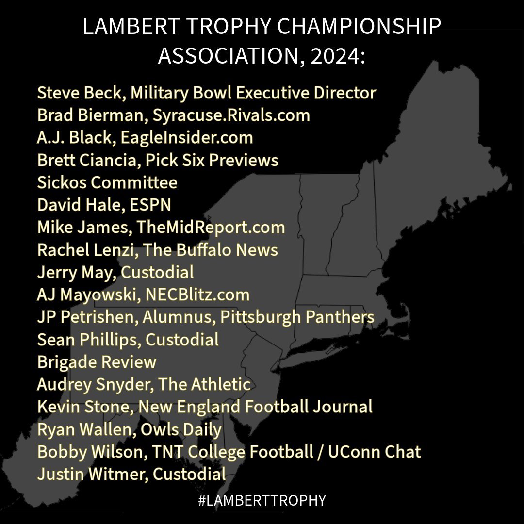 Since 1936, the Lambert Trophy has been awarded to the best team in the East at the highest level of college football. After a brief hiatus, the Lambert Trophy Championship Association was formed to ensure that the award is once again given annually.